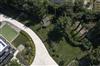 Aussicht: die Grünfläche, den Hof und eine stille Straße