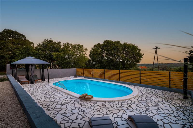 Opis: Verbringen Sie Ihren Urlaub im Haus Manda Adriatic in Piramatovci.Piramatovci liegt 24 km von Vodice und 25 km von Pirovac entfernt, das Sie besuchen können, wenn Sie die Strände erkunden und Abendspaziergänge genießen und dabei den Sonnenuntergang beobachten möchten.Haus Manda verfügt über zwei Schlafzimmer mit jeweils einem Doppelbett. Weitere Zustellbetten befinden sich im Wohnzimmer.Die Küche ist komplett ausgestattet, um Ihren Aufenthalt so angenehm wie möglich zu gestalten.Der Garten ist umzäunt und somit ein idealer Urlaubsort für Familien mit Kindern, die auf dem Spielplatz oder im Pool spielen können, während Sie auf der Terrasse einen Kaffee trinken oder auf Liegestühlen die Sonnenstrahlen genießen.Der Krka-Nationalpark ist nur 15 km entfernt. Wenn Sie ihn also noch nicht besucht haben, müssen Sie ihn unbedingt besuchen.Reservieren Sie und lernen Sie die Schönheiten Kroatiens kennen, indem Sie im Haus Manda Adriatic übernachten.