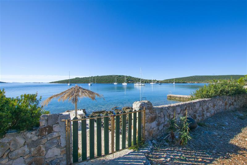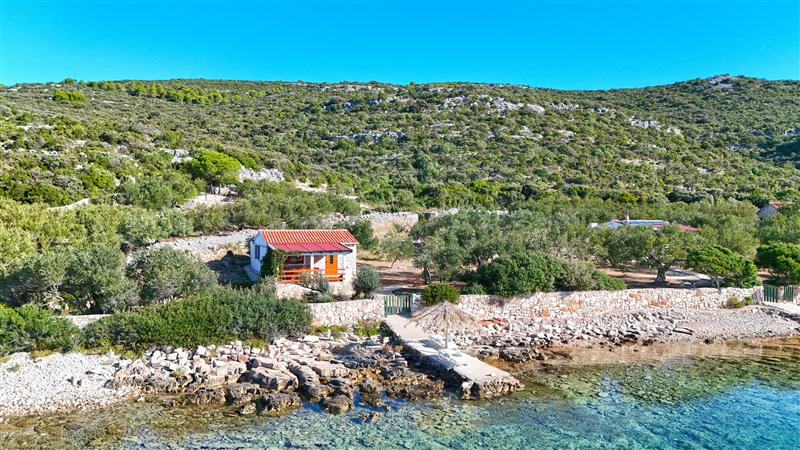 Opis: Holiday house Denebola with two bedrooms, for up to 5 people, is located by the sea, in Landjin bay, on the island of Pašman. All rooms in the house are on the ground floor. In the kitchen there is a refrigerator with a freezer and a gas stove with 2 burners. One of the bedrooms is equipped with a double bed, while the other has a bunk bed for 1 person above the double bed. Bed linen is included, fresh ones are made available after each week of stay. The bathroom equipment includes a shower, toilet and sink. Cold and warm water (solar) is installed in the kitchen and bathroom. Bath towels and beach towels are not available. In the garden there is a barbecue and an outdoor shower. The terrace is covered and furnished, and deckchairs are also available. Guests can have WiFi internet in the house with the purchase of a prepaid SIM card at a price of 10 euros for 7 days of flat rate internet. Guests need to insert this SIM card into one of their devices, which will then act as a hotspot. Electricity and water should be used sparingly here. Given that the water stays in the tank during the summer at high temperatures, it is recommended to boil it before consumption or buy drinking water in bottles. The water from the tank is suitable for cooking and washing. Solar-powered electricity is 220V, but it is not allowed to bring and use electrical devices, except chargers for cell phone/laptop batteries. We recommend guests to bring their own mobile phone so that they can contact us in case of need. There are standard sockets in the house so guests can charge their mobile phones in the house with their own standard charger. There is the possibility of renting a motor boat (on request and provided that the client has a boat driving license valid on open waters). A boat mooring is available in front of the house at no additional cost. There is a restaurant in Landjin bay, which is a favorite among sailors because of its Dalmatian cuisine. This house by the sea is accessible by car on an improvised rough road (gravel/dirt) over the hill which may be affected by weather conditions. The road is passable by car with slow and careful driving. The advantage of keeping your car next to the house where you spend your vacation is that you remain mobile during the summer, and you are able to go on day trips, for which there are an extremely large number of possibilities in the area. The island of Pašman is only a 15-minute ferry ride from Biograd na Moru. This island is a great destination for all fans of water sports. In addition, there are hiking, biking and trekking trails on the island, which are also near this house, along with which you can find various types of Mediterranean medicinal and aromatic plants - perfect for all nature enthusiasts.Ferry tickets are not included in the price. The minimum stay is 7 days, only from Saturday to Saturday. The house has no heating, so it is rented from spring to autumn. Pets are welcome, against an extra charge. Please indicate in your inquiry how many pets you are traveling with. We recommend arriving at our agency in Biograd na Moru during the morning to early afternoon, because the transfer and arrival at the house at night are difficult, even impossible after the last ferry leaves. After registering at our agency, you continue your journey to the island. If you find any ambiguities in the description or if you have any further questions, and you do not find the answers in the description, please contact us. The agency cannot be held responsible if the client does not inquire about details that are important to him and are not listed in the description, or for any reason are not completely clear to the client.